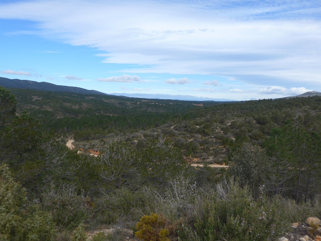 A partir de ahora iré ganando altura suavemente. El Barranco del Mas de Cervera queda por debajo, al otro lado la Sierra de Peña Palacios